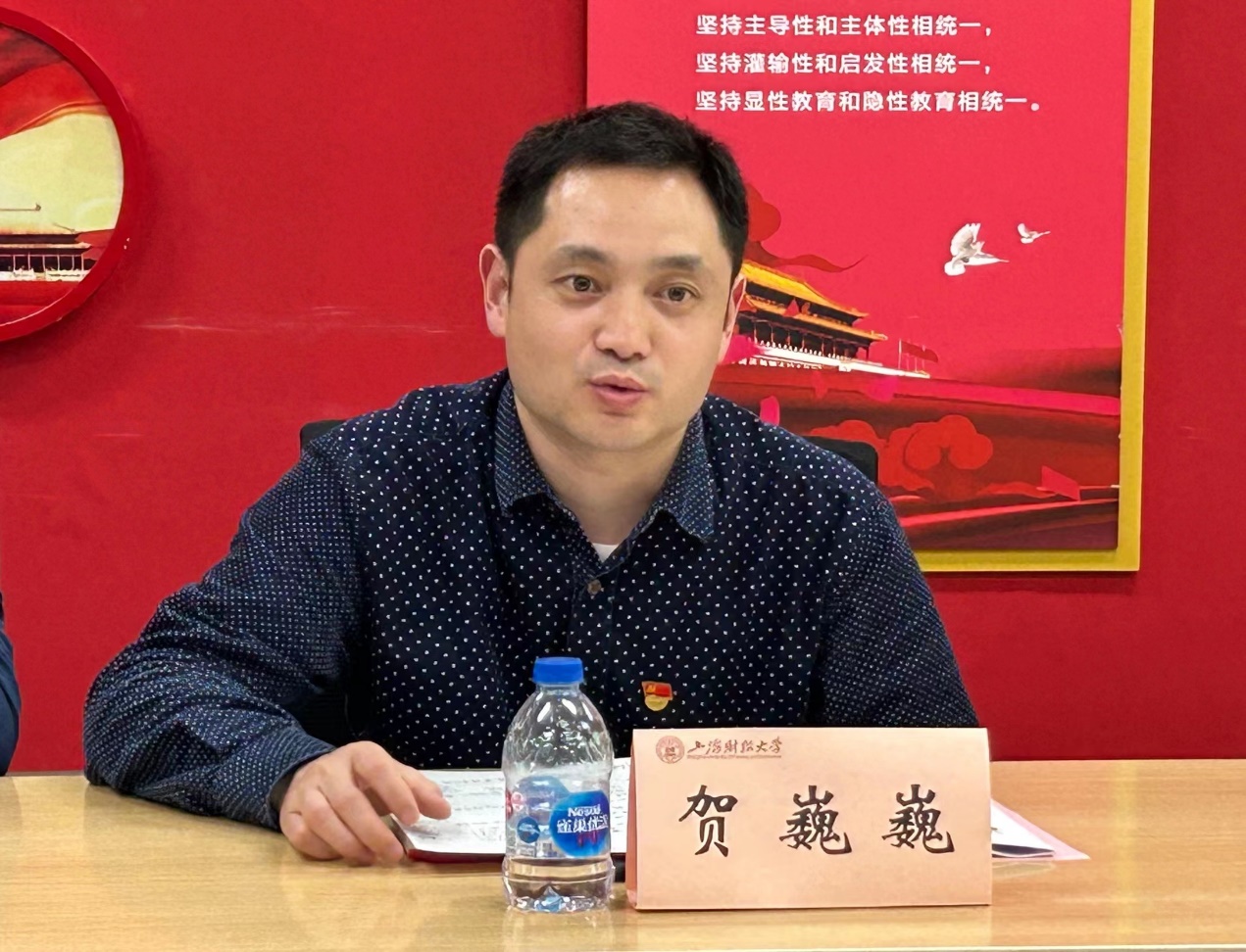 校团委书记沈亦骏首先以习近平总书记《论党的青年工作》这本书为切入点,围绕“习近平总书记关于青年的重要论述”这一主题进行了领学和分享,主要从青年工作、团的工作和思政教育工作三个方面进行解读。在青年工作方面,习近平总书记在党的十九大报告中提出了“培养担当民族复兴大任的时代新人”的新要求。这一重要论述深刻回答了党在新时代“培养什么样的青年、如何培养青年”等根本问题。随着时代的发展,时代新人的内涵也不断丰富。沈亦骏结合上财人才培养的使命定位分析如何培养时代新人,主要从理想信念、全球视野、民族精神,创造力、决断力、组织力、坚韧力,卓越财经人才三个层面作了分析阐释。在团的工作方面,2022年习近平总书记在庆祝中国共产主义青年团成立100周年大会上的讲话中立足建团百年新起点,围绕“如何更好把青年团结起来、组织起来、动员起来”的时代课题,对共青团提出了始终成为引领中国青年思想进步的政治学校、始终成为组织中国青年永久奋斗的先锋力量、始终成为党联系青年最为牢固的桥梁纽带、始终成为紧跟党走在时代前列的先进组织等“四个始终成为”的重大要求,成为新时代做好青年和共青团工作的行动指南。在此基础上,共青团改革如火如荼进行,沈亦骏以《上海财经大学共青团改革实施方案》为例进一步阐述学校团组织改革的具体实践。在思政教育工作方面,习近平总书记在全国宣传思想工作会议、全国教育大会和学校思想政治理论课教师座谈会上的讲话中强调了思想政治教育工作在党的青年工作中的重要作用。沈亦骏重点介绍了上财团青思政在主题教育、骨干培养、组织建设和典型选树方面的思想引领实践,“知行杯”暑期实践、“笃行班”政企挂职锻炼、重大赛会场馆志愿服务和西部计划及研究生支教团方面的社会实践,这些品牌项目和活动是学校立足青年工作、拓展思政实践课堂、积极强化团青思政项目、引导青年践行强国使命的具体体现。最后,沈亦骏结合团委工作强调共青团应该进一步自觉担当尽责、始终成为组织上财青年持续奋斗的先锋力量;进一步关心关爱青年、始终成为党联系青年最为牢固的桥梁纽带;进一步强化自我革命、始终成为紧跟党走在时代前列的先进组织。
