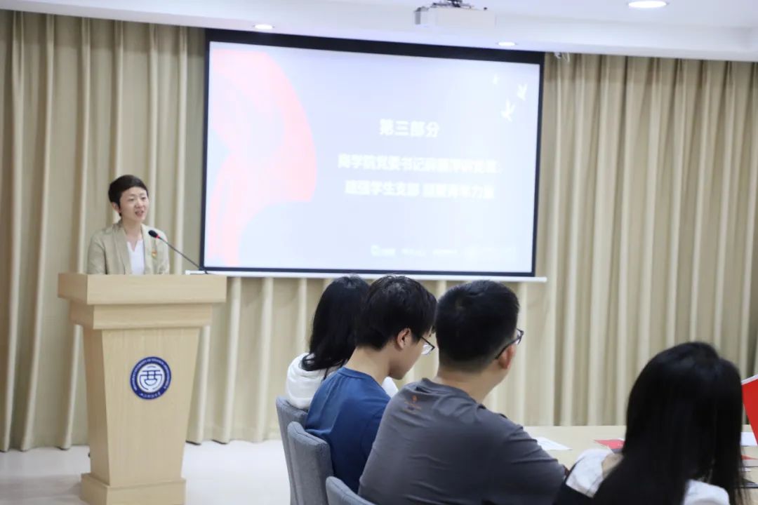 薛丽萍为同学们讲述了中共四大召开的时代背景和历史意义。她表示,中共四大是党支部建设的历史起点,第一次将支部确定为党的基本组织,开始将党的工作重心转移到组织建设上来。支部是党在群众中的战斗堡垒,支部建设是党的战斗力的基础。学生党支部要发挥加强思想政治引领,筑牢学生理想信念根基,引导学生刻苦学习、全面发展、健康成长的作用。要把党支部建设放在更加突出的位置,依托主题教育,推动党支部标准化、规范化建设,不断提高党支部建设质量。