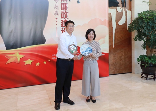陈云纪念馆党委副书记、纪委书记王震凤与校党委副书记、纪委书记何鹏程代表馆校合作双方互相赠送了纪念品。