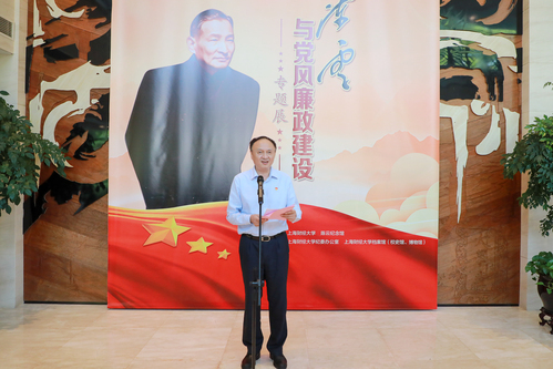 校党委书记许涛发表讲话。他表示,习近平总书记《在纪念陈云同志诞辰 110 周年座谈会上的讲话》强调指出:陈云同志身上表现出来的坚定理想信念、坚强党性原则、求真务实作风、朴素公仆情怀、勤奋学习精神,永远值得我们学习。陈云同志在 70 多年的革命生涯中充分展现出无产阶级革命家的政治气魄和智慧,其崇高的思想品格和务实的工作作风,为全党树立了光辉的榜样。当年他欣然应邀为上海财经大学题写校名,充分体现了党和国家对高等财经教育的高度重视,更充分体现了敬爱的陈云同志对上海财经大学无微不至的关怀和所寄予的殷切期望,给予了全校师生员工莫大的鼓舞和激励。38 年来,陈云同志题写的新校名,已深刻融于校史校风中。今天学校举办这个展览,并特别展示了这幅珍贵的题字,是希望上财人传承陈云同志厚重的精神财富和宏大的家国情怀,踔厉奋发,勇毅前行,为国家经济繁荣与昌盛接续奋斗,奉献上财人的智慧和力量。同时他希望学校各级党组织利用好此次展览的宝贵学习机会,精心安排筹划,有序组织参观学习,以陈云同志廉洁奉公的一生,激励全校党员干部坚持以党性立身做事,增强纪律意识、规矩意识,做到公正用权、依法用权、为民用权、廉洁用权,树立求真务实、团结奋斗的时代新风;引导全校党员师生自觉践行“学思想、强党性、重实践、建新功”总要求,努力在以学铸魂、以学增智、以学正风、以学促干方面取得实实在在的成效。