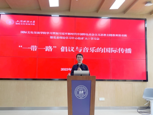 5月26日下午,国际文化交流学院党委开展“一带一路”倡议与音乐的国际传播专题辅导报告暨党委理论中心组(扩大)学习会,由校团委艺术实践教育中心张天老师主讲。学院党政领导、党委委员、师生党员、入党积极分子及部分“一带一路”沿线国家国际学生代表共同参加学习会。学习会由学院党委书记杨鸿主持。