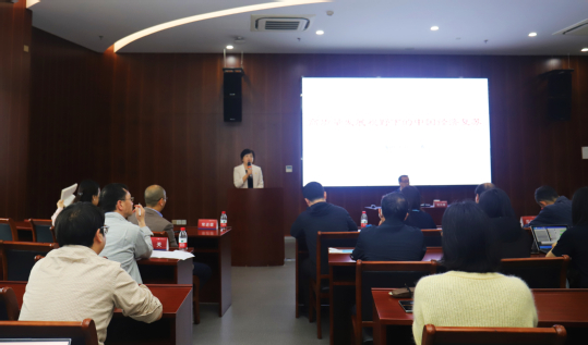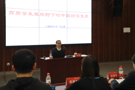 高等研究院副院长林立国主持交流讨论环节。他表示,从高质量发展理论到宏观经济经典理论,再到当前经济形势的分析,刘校长都有着深入的研究与分析,将党课与研究有机结合,为大家带来了印象深刻的一课。