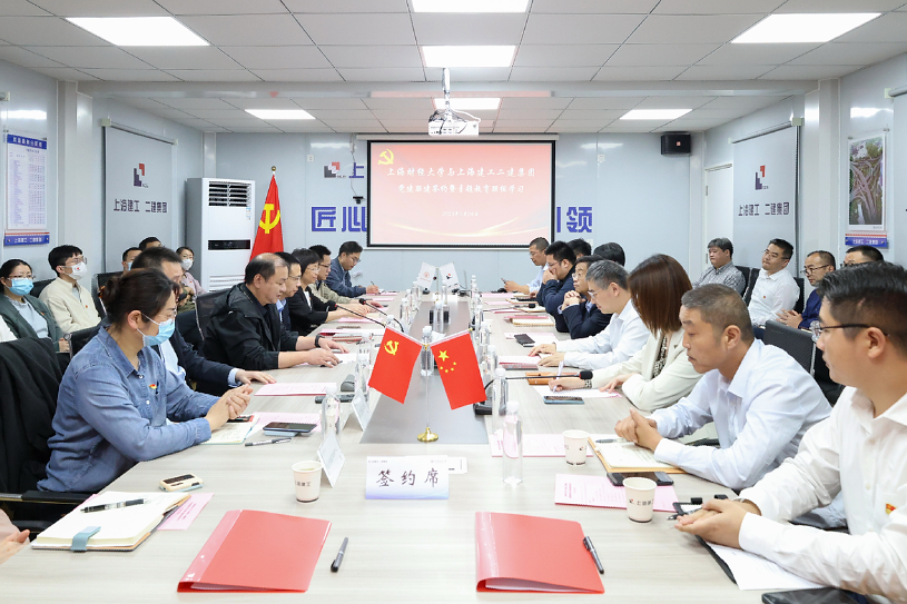 此次党建联建活动中,学校还与二建集团签订了共建学生联合培养基地协议,“上海财经大学上海建工二建集团学生实习基地”同步揭牌。二建集团陈新董事长表示,将积极主动作为,用好联建载体,发挥好组织优势,为优秀学子提供学习和锻炼的良好平台。徐飞常务副校长代表学校对建设者们表示感谢,对二建集团在智能建造、绿色施工等各方面展现的专业管理水平表示肯定,希望二建集团在工程进度、质量、安全文明施工管理上精益求精,精心打造品质工程。