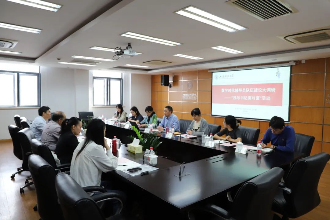 10月26日,上海财经大学数字时代辅导员队伍建设大调研——“我与书记面对面”活动在商学院举办。上海财经大学党委副书记朱鸣雄、党委学生工作部/研究生工作部部长沈亦骏、党委学生工作部/研究生工作部思政科魏阳芷,商学院党委副书记王体以及全体辅导员参会。活动由校党委学生工作部、研究生工作部副部长何志强主持。
