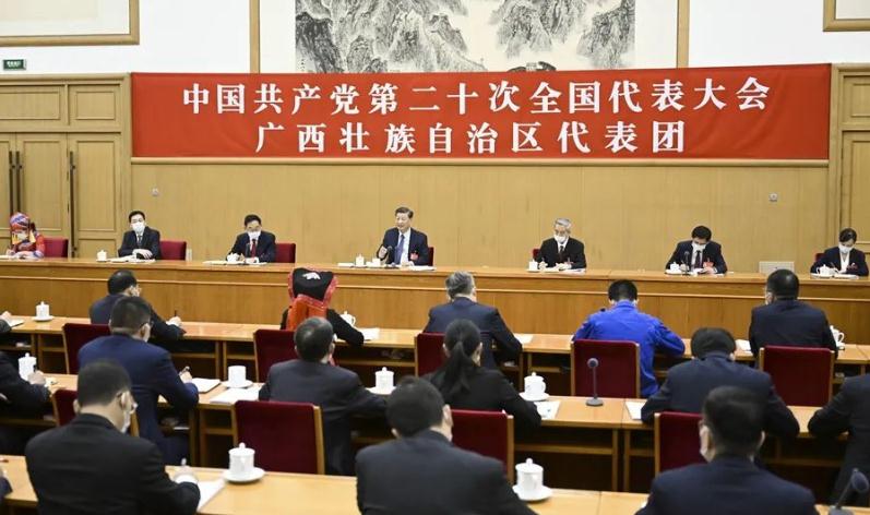 2022年10月17日,习近平总书记参加党的二十大广西代表团讨论。新华社记者 谢环驰 摄