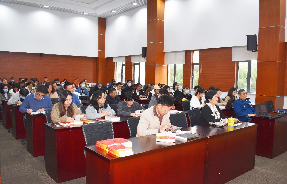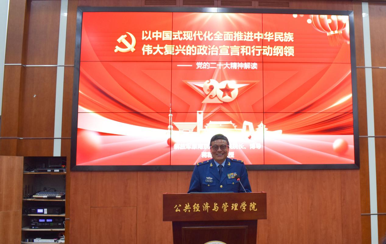 11月18日,公共经济与管理学院召开学习宣传贯彻党的二十大精神报告会暨专题教育培训班开班式。活动邀请解放军原南京政治学院院长、博导蒋乾麟教授作《以中国式现代化全面推进中华民族伟大复兴的政治宣言和行动纲领——党的二十大精神解读》专题报告。学院党委书记方芳教授、全体教职工、各党支部书记及党员代表参加了线下活动,其余师生全员参与线上学习。活动由学院党委副书记周巧主持。