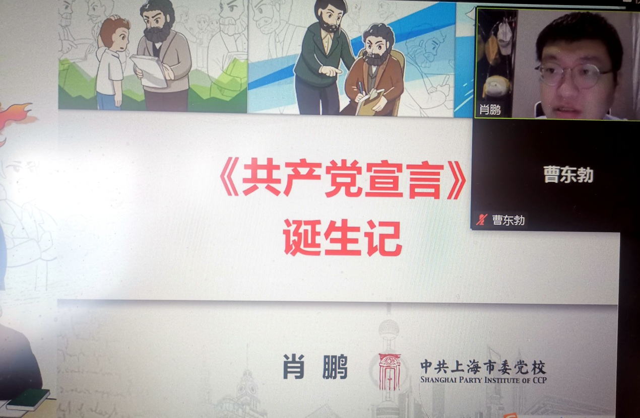 上海市委党校肖鹏副教授为学员带来题为《<共产党宣言>诞生记》专题党课。肖老师以时间为线索,详细阐述了马克思与恩格斯如何共同创立历史唯物主义新世界观,最终完成《共产党宣言》的经历。党课就《共产党宣言》诞生背后的故事及意义进行了深入的挖掘。