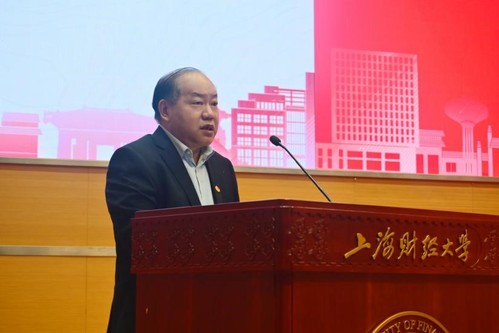 校党委副书记朱鸣雄老师在会上发表了讲话,高度赞扬了第三十五届学联取得的成绩以及校院学生骨干在学校疫情防控大局中勇于担当、甘于奉献的青春力量。他殷切寄语学生代表要用心用情当好学校与学生的纽带,为同学发声、为学校建言,希望全体上财学子在认真学习宣传贯彻党的二十大精神之际,坚定理想信念,让青春在全面建设社会主义现代化国家新征程上绽放绚丽之花。